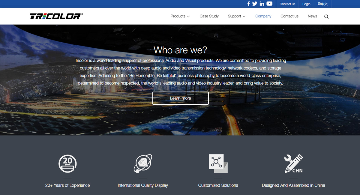 淳中科技(Tricolor)是全球領(lǐng)先的專(zhuān)業(yè)視音頻顯控產(chǎn)品及解決方案的供應(yīng)商,秉承深厚的圖像處理、音視頻編解碼、傳輸技術(shù)、系統(tǒng)集成的專(zhuān)業(yè)能力,致力于面向全球各行業(yè)客戶(hù)提供領(lǐng)先的顯控產(chǎn)品與解決方案及專(zhuān)業(yè)優(yōu)質(zhì)的服務(wù)。