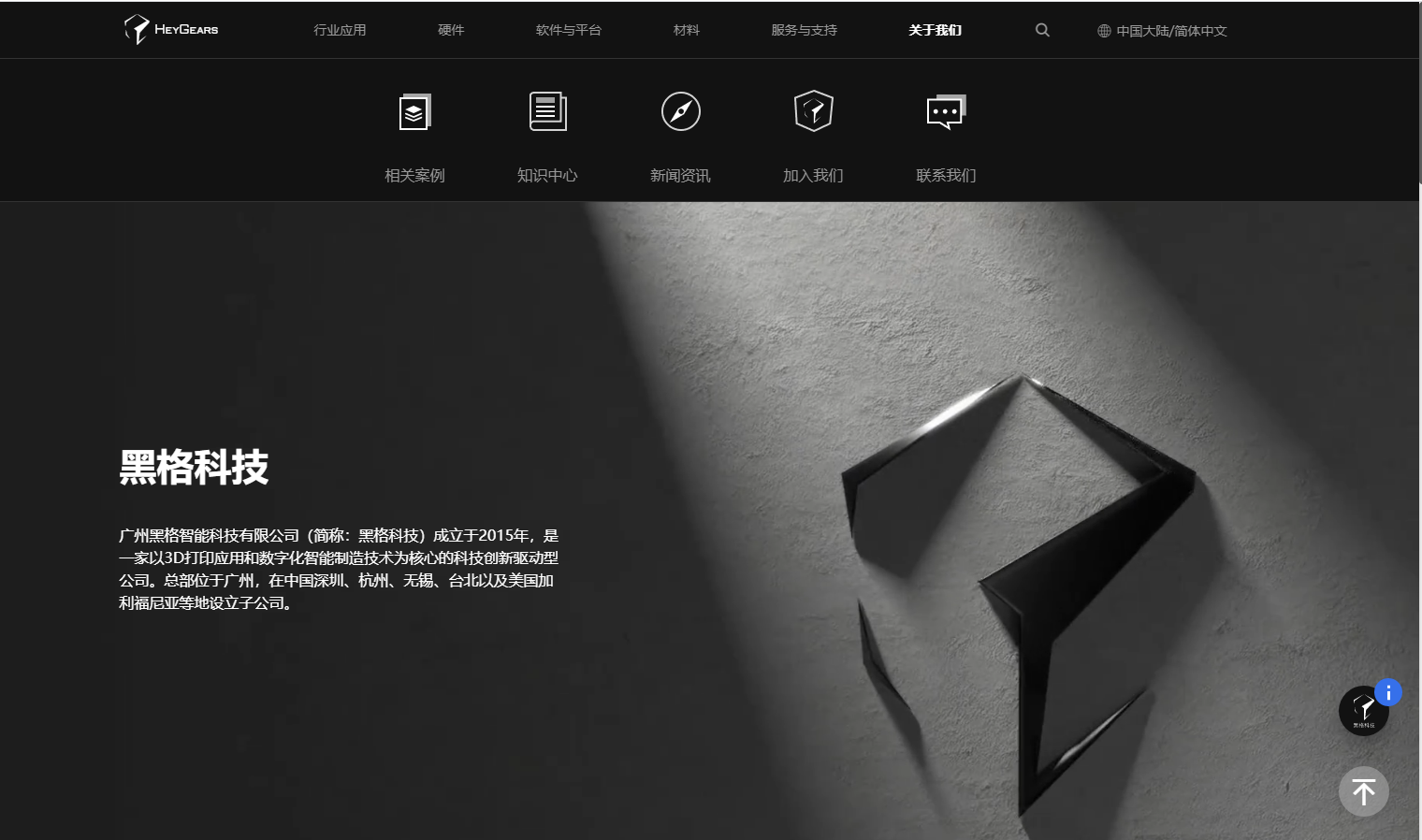 廣州黑格智能科技有限公司(簡稱:黑格科技)成立于2015年,是一家以3D打印應(yīng)用和數(shù)字化智能制造技術(shù)為核心的科技創(chuàng)新驅(qū)動型公司。總部位于廣州,在中國深圳、杭州、無錫、臺北以及美國加利福尼亞等地設(shè)立子公司。